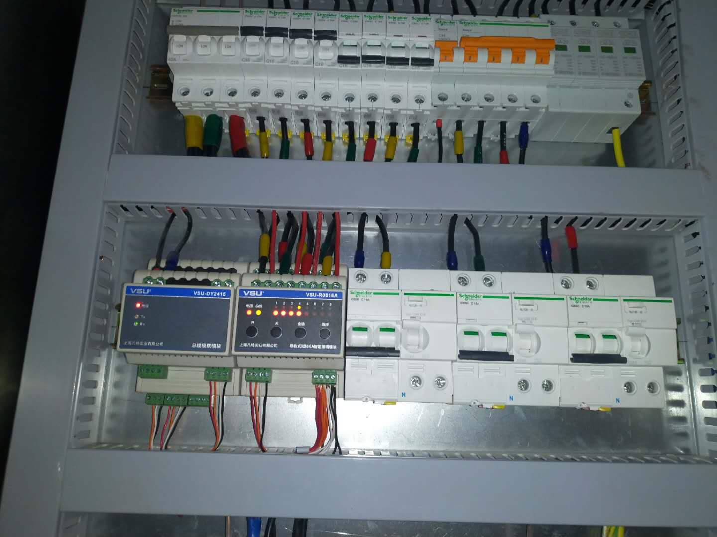 VSU通過采用當(dāng)前最新的控制系統(tǒng)硬件技術(shù)和成熟可靠的軟件系統(tǒng),定制出一套適合于河濱地下污水處理廠所需要、技術(shù)先進(jìn)、性能可靠、穩(wěn)定、性能價格比高、開放性好、易于擴(kuò)展的控制系統(tǒng),滿足用戶為了提高生產(chǎn)效率、強(qiáng)化生產(chǎn)管理、保證生產(chǎn)安全、降低生產(chǎn)成本的要求。在了解到客戶需求,現(xiàn)場情況等因素后,最終該項目采用的是VSU總線型智能照明控制系統(tǒng),網(wǎng)關(guān)主機(jī)搭配電源模塊、級聯(lián)模塊、4路16A智能照明控制模塊、8路16A智能照明控制模塊、4鍵、6鍵智能照明控制面板、連接片,既能操作電腦達(dá)到一鍵全開、全關(guān)的效果,也能設(shè)置場景控制,減少能耗。